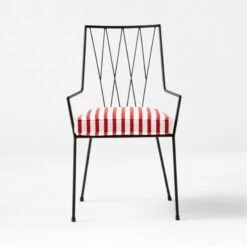 Pavilion Black Outdoor Dining Armchair With Striped Sunbrella ® Cushion Model 6470 Set Of 2