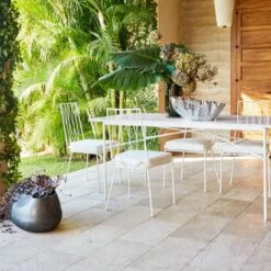 Pavilion Ivory Outdoor Dining Armchair With Striped Sunbrella ® Cushion Model 6470 Set Of 2