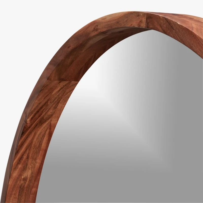 Solid sustainable acacia wood comes full circle to showcase a sweeping grain and warm hi/lo tones. Spanning over three feet in diameter, handcrafted wooden frame rings the inset mirror with 3D depth. Mounting hardware is not included.