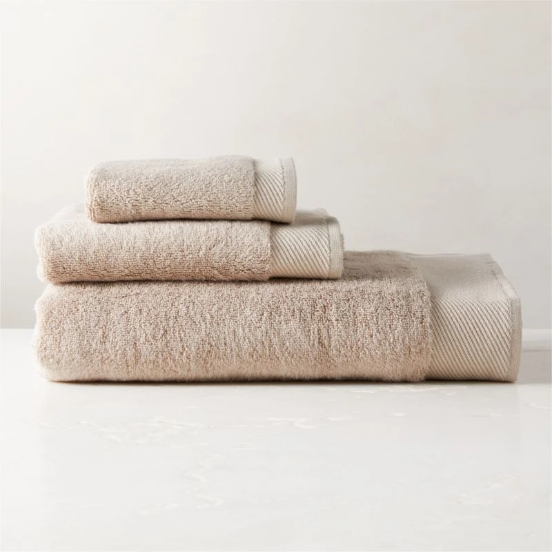 Impressively soft, extremely absorbent bath towels are as durable as they are beautiful. Spun from a blend of organic cotton and certified TENCEL ™ modal, towels evoke serenity in light taupe. CB2 exclusive.
