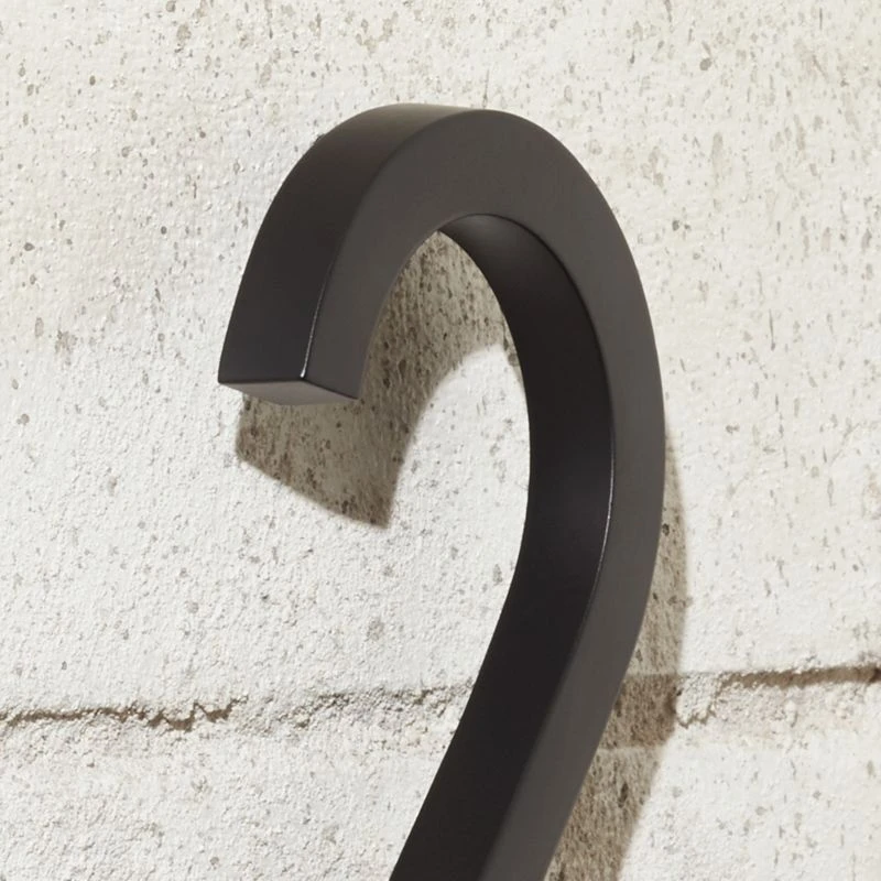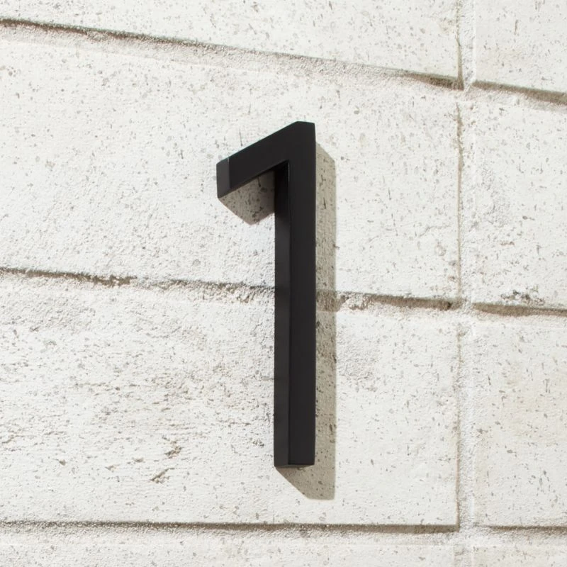Solid brass house number finished in matte black announces your address in sleek sans serif designed by award-winning Swiss graphic designer Aurèle Sack. Flush mount or leave screws partially out for a floating effect. CB2 exclusive.