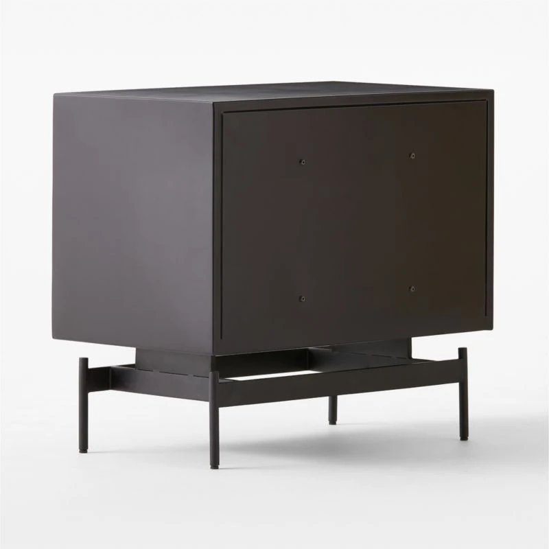 Designed by VUUE, blackened stainless steel holds two deep drawers finished in textured concrete. The simple, angular design is complemented by two flat stainless steel handles that disappear when viewed straight on. CB2 exclusive.