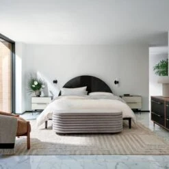 Avers 2-Drawer Plaster and Black Metal Nightstand 26″Wx15.5″Dx23.5″H