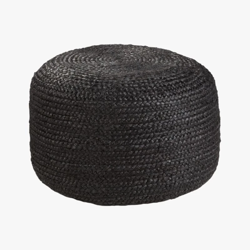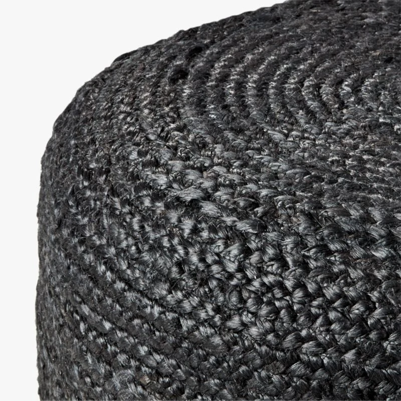 Black Braided Jute Pouf. 20″ dia. x 12″H
