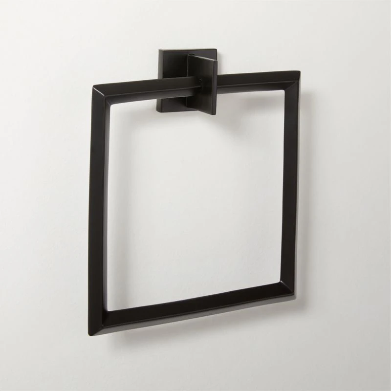 Designed by Barcelona-based Mermelada Estudio, unique beveled towel ring brings sharp lines and a touch of modern luxury to the bath. Solid brass construction is substantial; its quality is obvious. Bathroom collection also includes wall mount hook, towel bar and toilet paper holder. Learn more about Mermelada Estudio on our blog. CB2 exclusive.