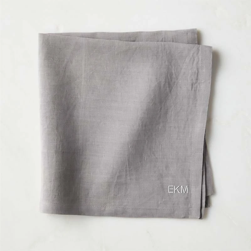 100% natural linen minds your manners in modern grey with a finely finished stitched edge. bolt grey linen napkins set of four is a CB2 exclusive.