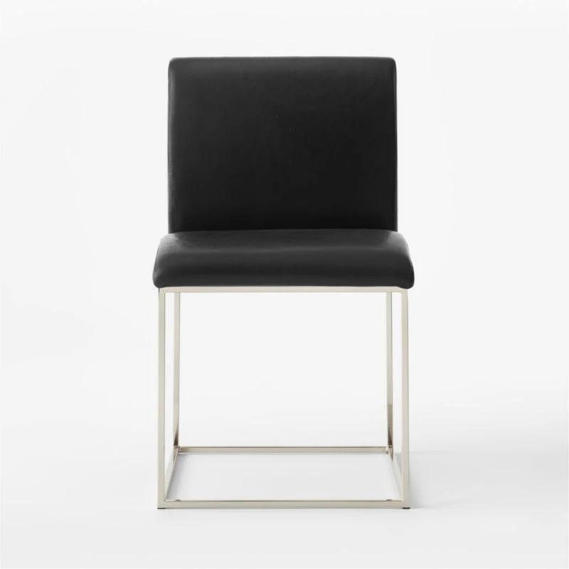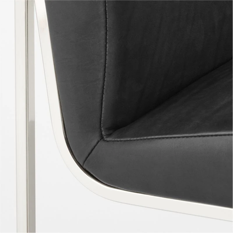 Mermelada Estudio’s mixed-material design puts an elegant twist on a classic silhouette. Polished nickel legs meet genuine black leather upholstery for an elevated juxtaposition of texture and style. CB2 exclusive.