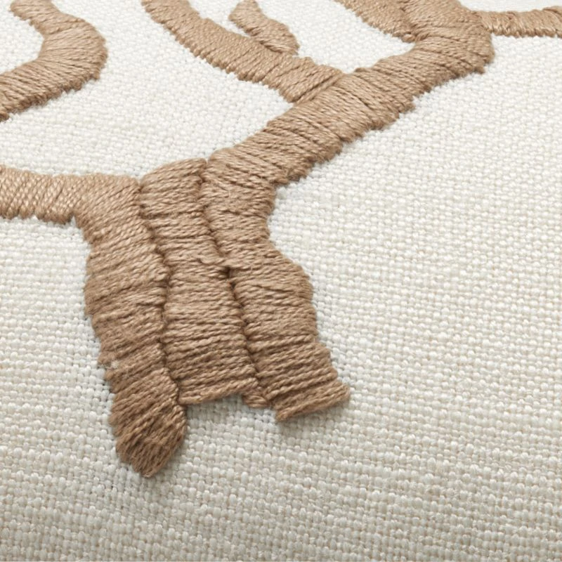 Light brown pieces of coral grace this outdoor pillow by Ross Cassidy. To create the design, Cassidy painted the coral by hand. Detailed embroidery gives them an irresistibly tactile quality on a base of recycled polyester. CB2 exclusive.