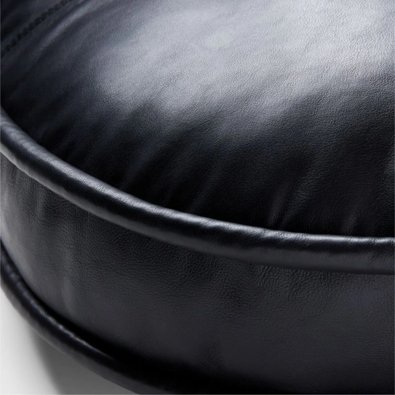 Dacre Round Black Leather Throw Pillow 16” 16″Wx16″Dx3″H