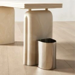 Polished stainless steel wastebasket brings functional modern style to the office. Combining a curved silhouette with one flat side, wastebasket is designed to rest cleanly against a wall or inside of a desk. CB2 exclusive.