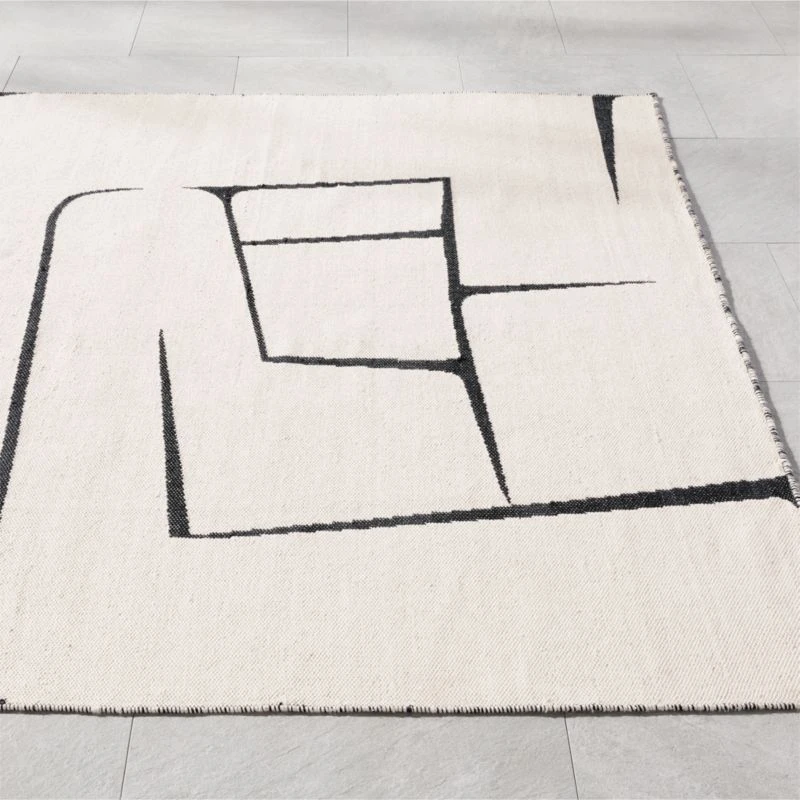 Faro Handwoven Performance White and Black Indoor/Outdoor Area Rug 5’x8′ 5’x8′
