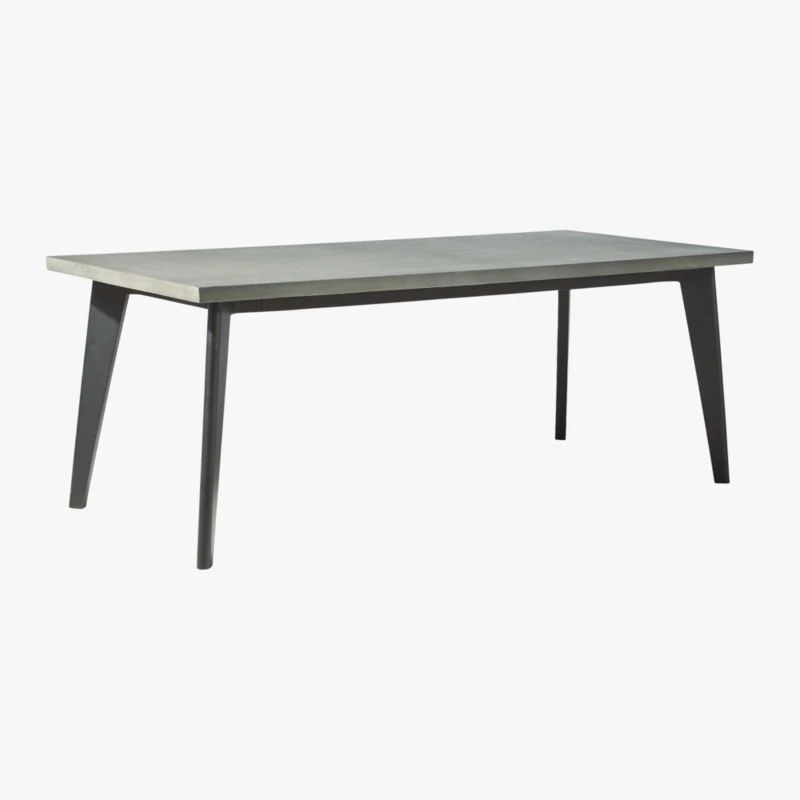 Designed by Mermelada Estudio, versatile table mixes modern materials for an industrial take on everyday dining. Black-finished steel sets a clean base with angled legs that taper to the feet. Paired here with a solid grey concrete top. Part of the mix and match collection, top or base can be swapped out for a whole new look. Learn about Mermelada Estudio on our blog. CB2 exclusive.