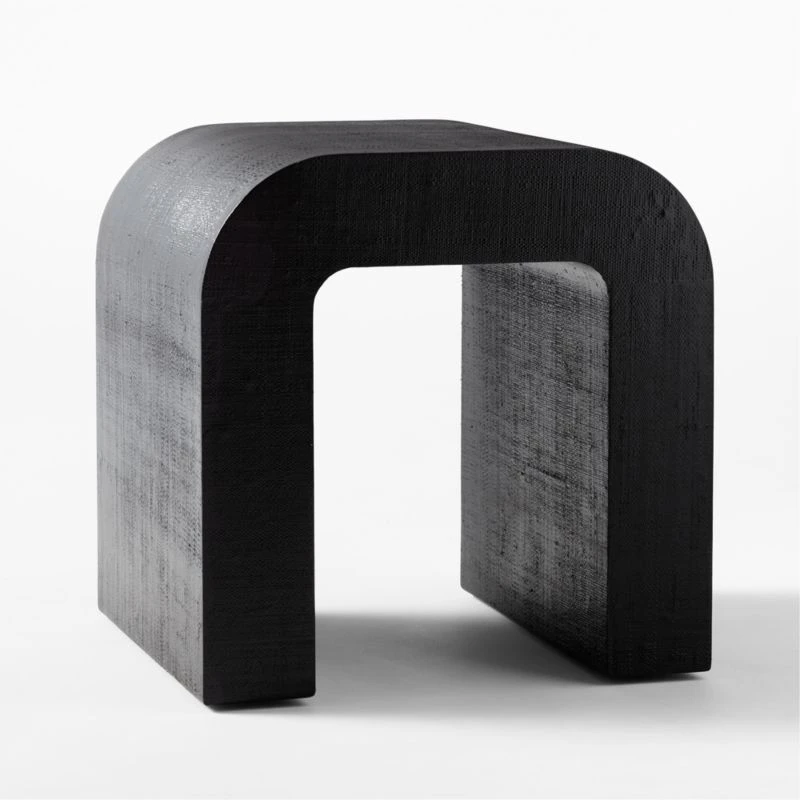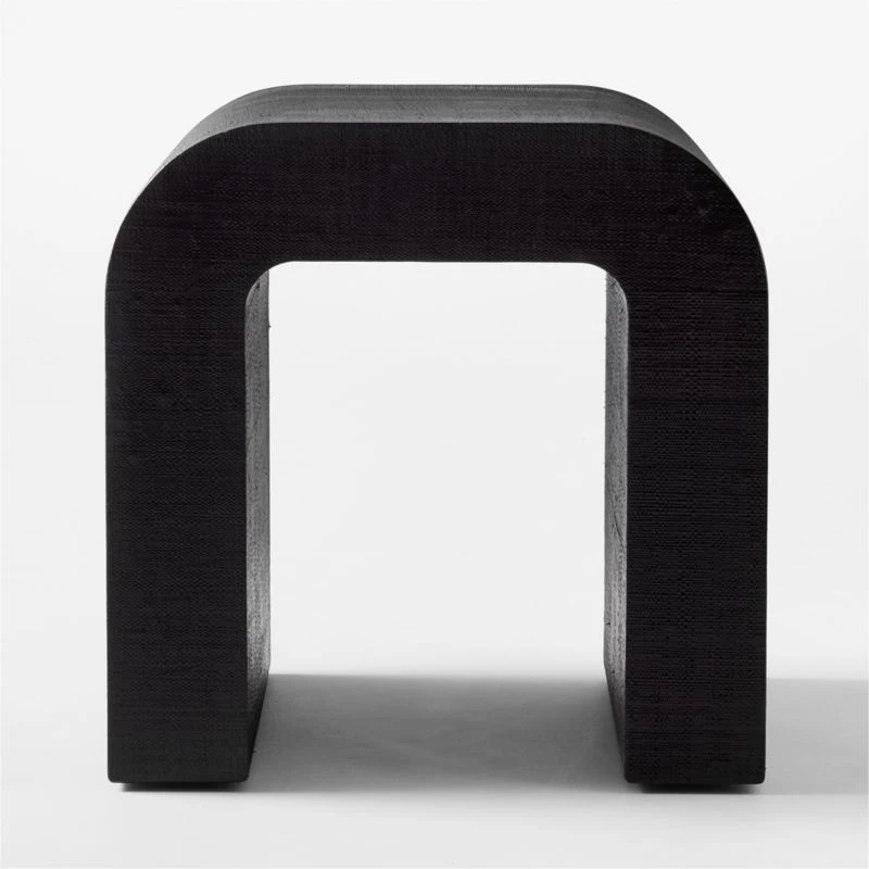 Inspired by 1970s modern silhouettes and unique materials, VUUE’s design turns a simple U-shaped form into a statement side table with extra-rich texture. Raffia wraps the piece, finished in hi-gloss black. Mixes effortlessly with any modern living situation. Learn more about VUUE on our blog. CB2 exclusive.