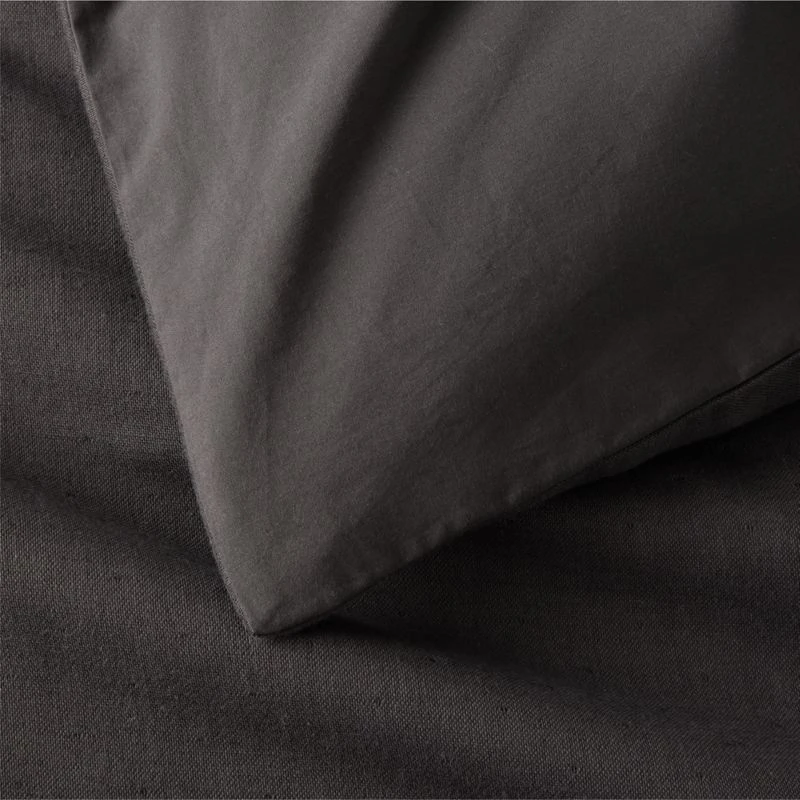 Supremely comfortable and impressively durable, this Turkish bedding blends two of the world’s finest fabrics: organic cotton and EUROPEAN FLAX ® linen (the highest grade of linen available). Along with being a highly sustainable fiber, flax linen is lightweight and breathable and becomes softer over time. Duvet cover and pillow shams reverse to an organic cotton percale backing for comfortable slumber throughout every season. CB2 exclusive.