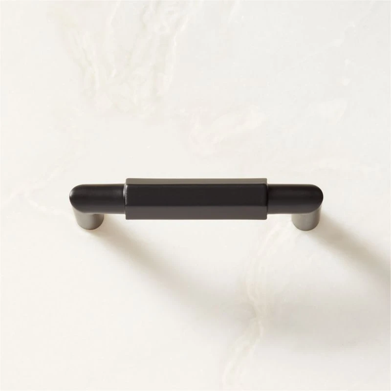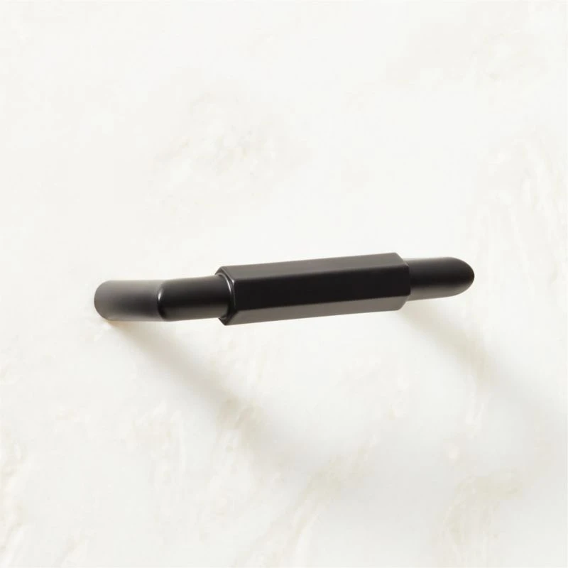 Bold hexagonal handle is inspired by the geometric architecture of French colonial pillars. Simple but modern form offers a pleasant heft with crisp, defined lines in black. CB2 exclusive.