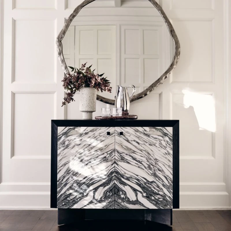 Polished to a high shine, curved stainless steel pitcher has a classic, curved shape with a slim, modern handle. Includes ice lip for easy pouring. CB2 exclusive.