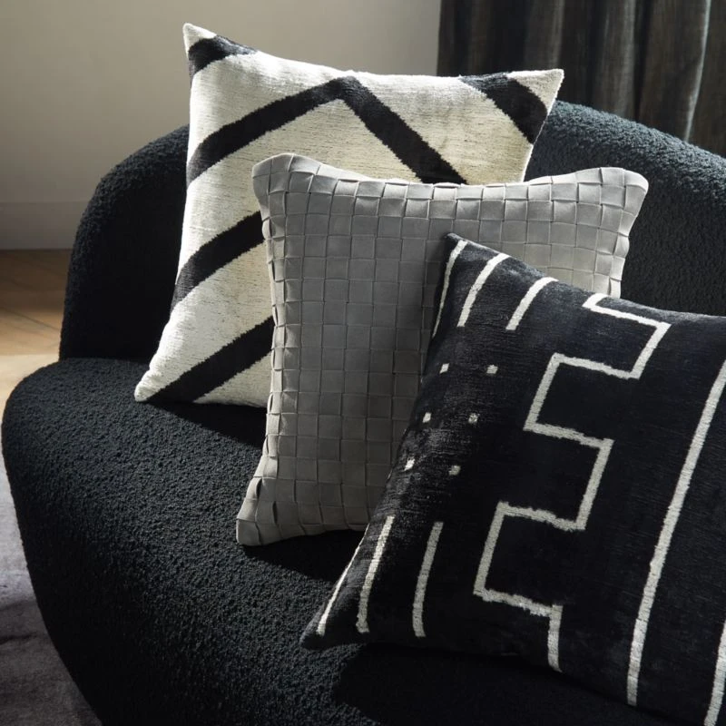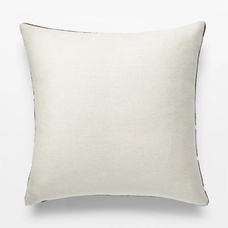 Turkish silk threads are handloomed into a rich, velvet-like texture to create one of the most sumptuous, luxurious pillows we’ve ever seen. Because the silk is collected from different areas, there will be slight differences in color, as well as variations in the weave due to the handcrafted nature of the process. Knife edge with a hidden zipper closure, black and white pillow flips to a solid neutral fine linen back. CB2 pillows include a pillow insert in your choice of feather-down or down alternative. CB2 exclusive.