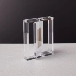 100% clear acrylic keeps the spotlight on your photos. Two-sided frame holds a photo on each side and swivels to display. Freestands horizontally or vertically and layers with the 5″x7″ and 8″x10″ frames for a modern display. CB2 exclusive.