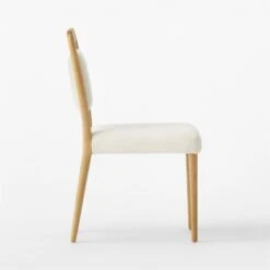 Shaped with a hint of postmodern flair, this Nicholas Obeid design emphasizes curves and angles. Crafted with oak certified sustainable by the Forest Stewardship Council ® (FSC), the contoured frame adds a touch of playfulness to the dining room. Plush foam seat is upholstered in a water-resistant performance fabric in clean, crisp ivory. CB2 exclusive.