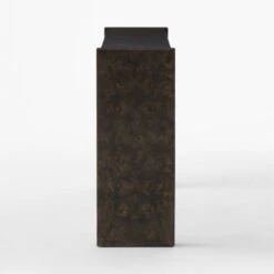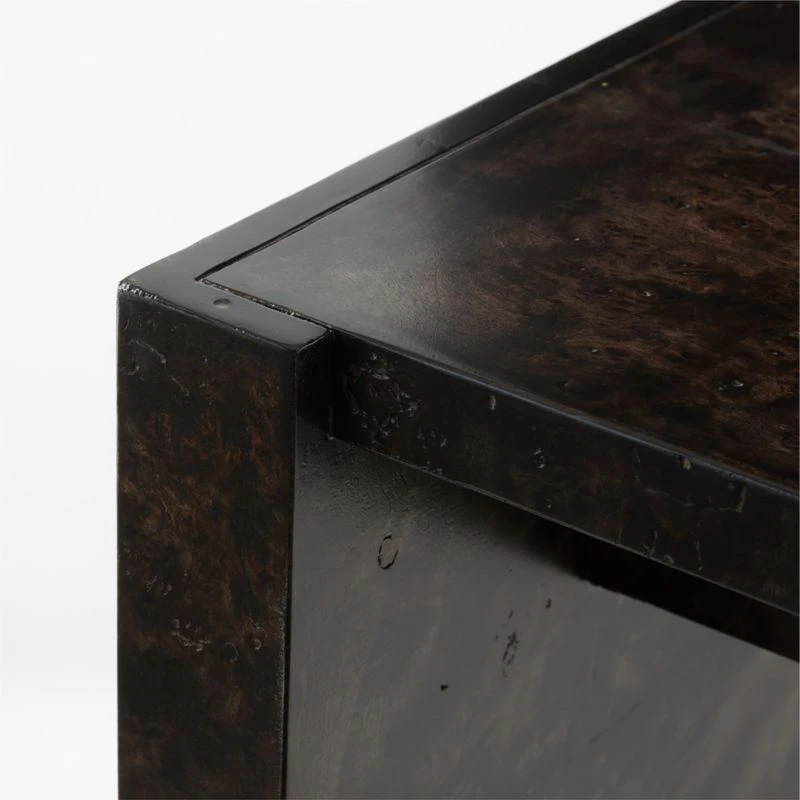 Complemented by clean lines and a minimal design, ebonized burl wood veneer is the star of this console table designed by VUUE. Thick rectangular legs stand flush with the top, providing structural interest without distracting from the wood’s gorgeous swirling grain. CB2 exclusive.