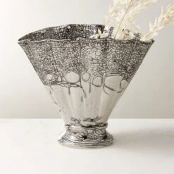 Overlap White Glazed Footed Bowl 13.75″ dia. x 6″H