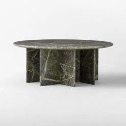 Crafted with highly active Forest green marble, coffee table by VUUE incorporates geometric design elements for a stunning silhouette. The marble’s dynamic veining and striking tones of moss and cream give it mesmerizing allure, and the variation inherent to natural stone ensures that no two tables will be alike. CB2 exclusive.