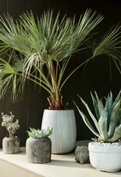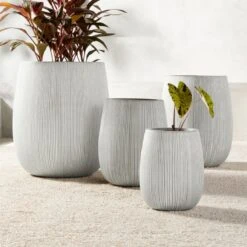 Substantial planter fools the eye. Composed of cement, sand and fiberglass, large-scale pot is surprisingly lightweight and super durable. Warm grey finish makes it a natural fit for any outdoor space. CB2 exclusive.
