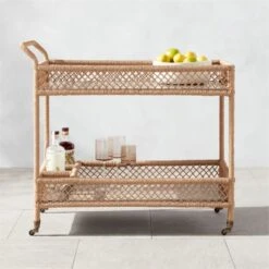Remo Travertine and Rattan Outdoor Bar Cart 35″Wx19″Dx32″H
