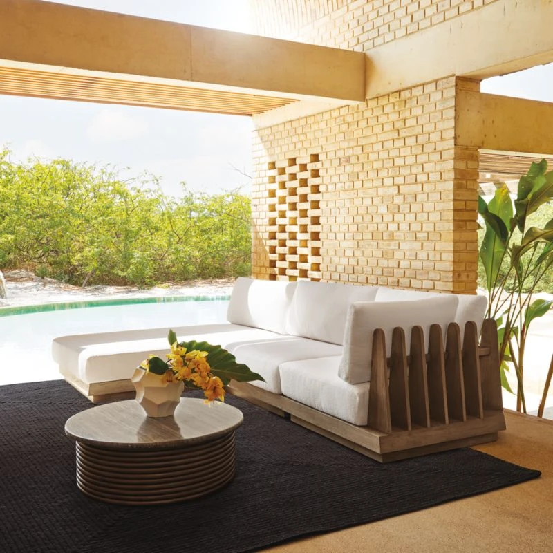 Riposo Teak 3-Piece Outdoor Sectional with Boucle Sunbrella ® Cushions 42″Wx42″Dx28.5″H