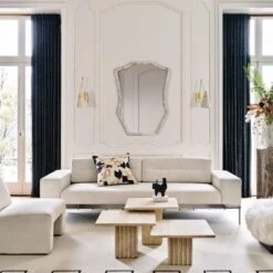 Deep blue silk dupioni turns windows into a focal point with its luxurious sheen. Natural subtle texture adds depth and warmth to the panel so it never feels too shiny. Hangs beautifully with back tabs, rod pocket or drapery hooks. CB2 exclusive.