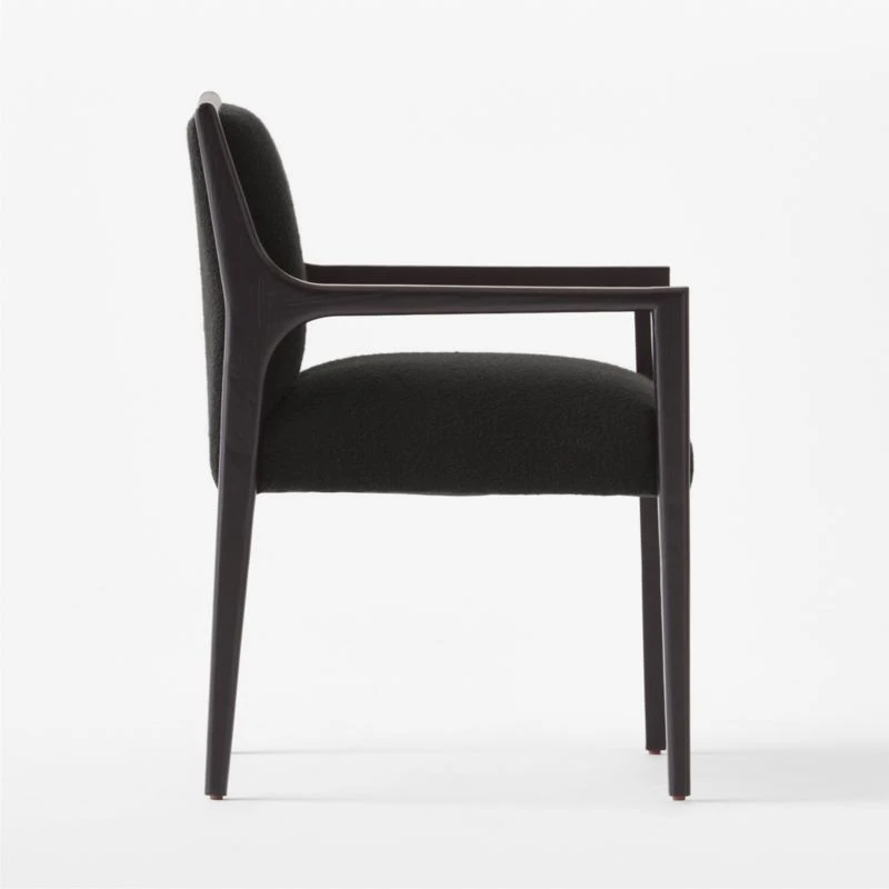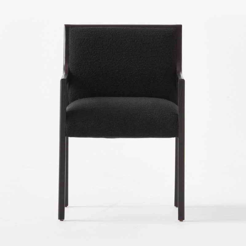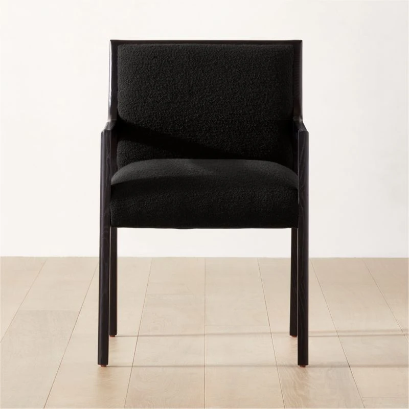 Barcelona-based Mermelada Estudio combines a classic silhouette with luxe boucle for a clean look that fits any design aesthetic. Ebonized ash wood frame supports a black boucle seat, adding texture and dimension to the monochromatic design. CB2 exclusive.