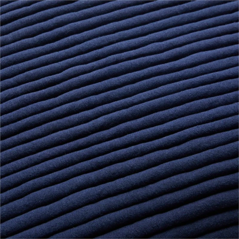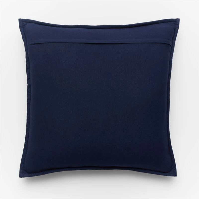 Super-soft cotton jersey pillow is extra-plush thanks to linear dimensional strips stuffed with their own polyfill and thick piped border. Flips to solid navy back. CB2 pillows include a pillow insert in your choice of feather-down or down alternative. CB2 exclusive.