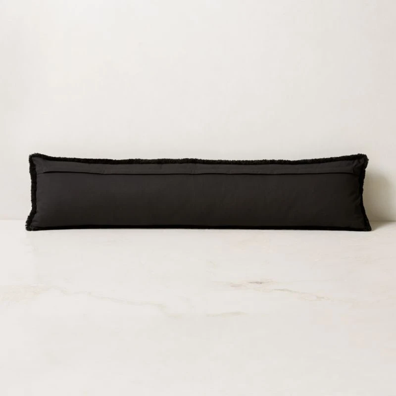 Shorn Black Sheepskin Fur Throw Pillow with Down-Alternative Insert 48”x12” 48″Wx12″H
