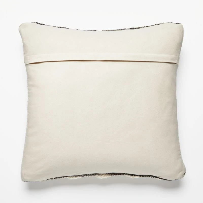 Chunky, high-texture pillow is the new neutral every space needs. Handwoven fabric in classic black and ivory has layers of dimension and texture. Handloomed by textile artists in India. CB2 pillows include a pillow insert in your choice of feather down or down alternative. CB2 exclusive.