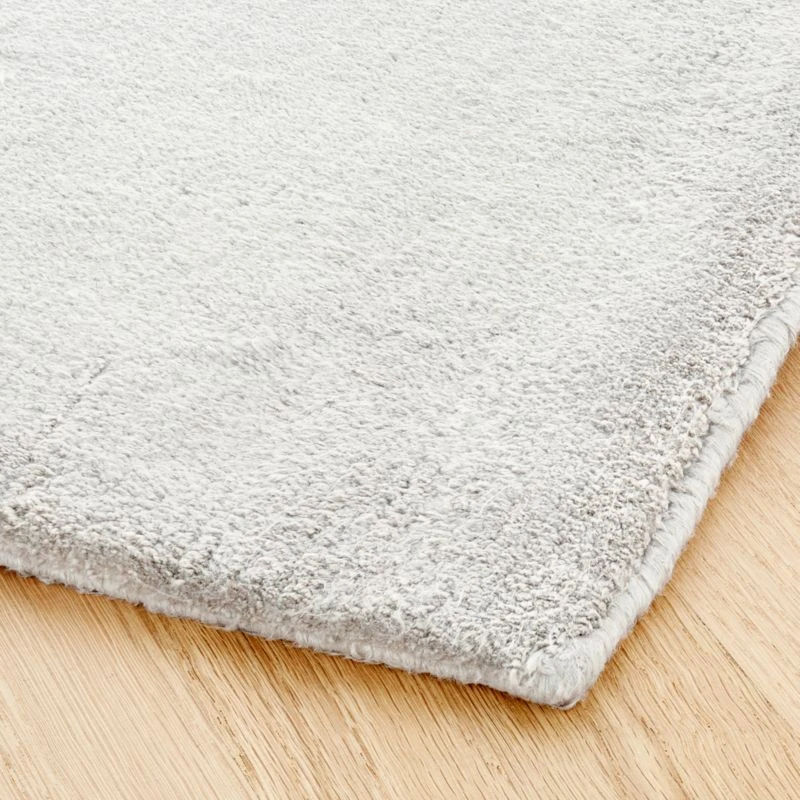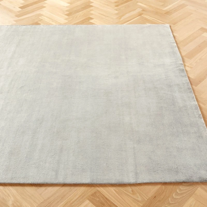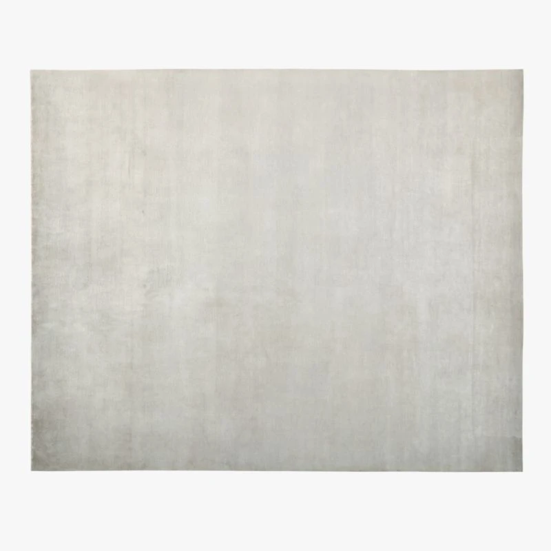 Grey silk hand-knotted on pure cotton, this luxurious rug features the most intricate and concentrated hand-knotting we’ve ever done. With 100 Tibetan knots per square inch, the weaving technique creates incredibly lush pile tufts. Rug is hand-sheared, finished with handbound edges and double washed to enhance its natural medium sheen and unmistakably rich feel. CB2 exclusive.